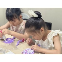 本次活动中,孩子们以一面面小巧圆润的镜子为画布,用五彩缤纷的奶油胶勾勒梦想轮廓,搭配小珠子、亮片、塑料小花等装饰配件,在小铲子与镊子的巧妙配合下,将平凡化为惊艳。
